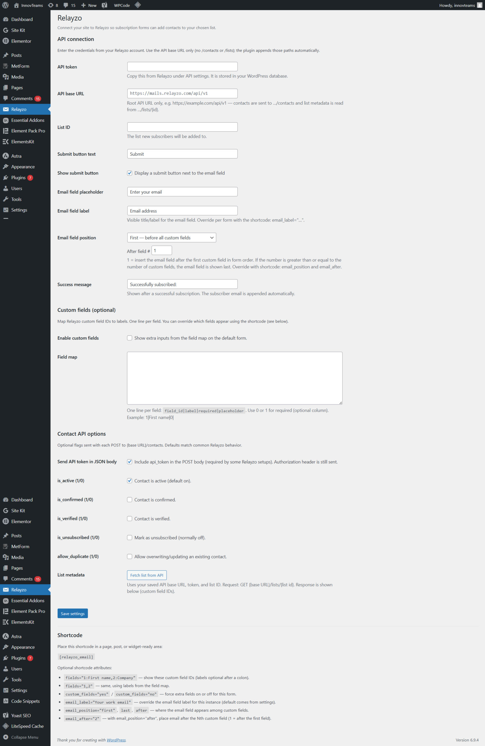 Relayzo API Settings for WordPress